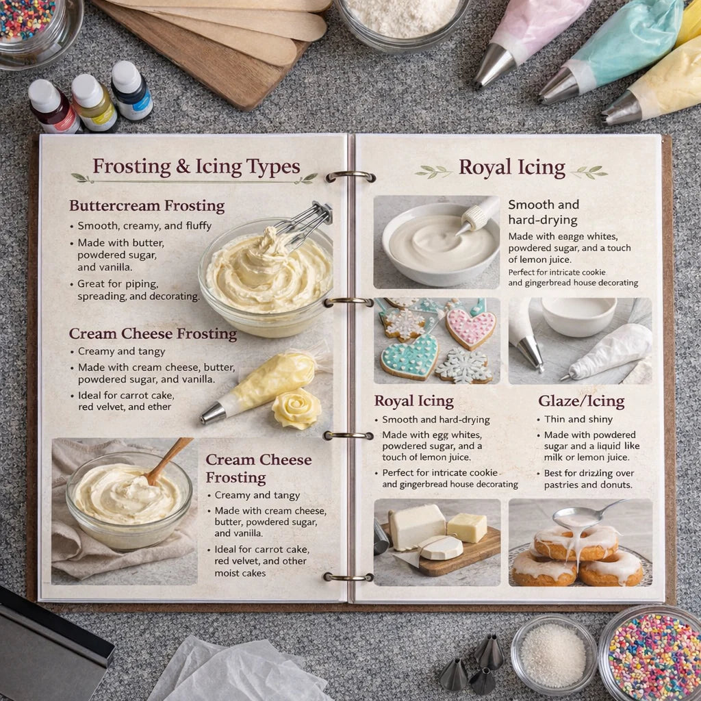 ✓ Includes step-by-step guides for piping, frosting, fondant work, borders, textures, and toppers